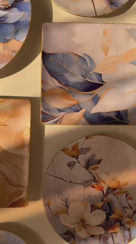 A luxurious and refined collection featuring blue and gold floral artwork. This set blends elegance and sophistication, perfect for adding a graceful statement to any modern space.